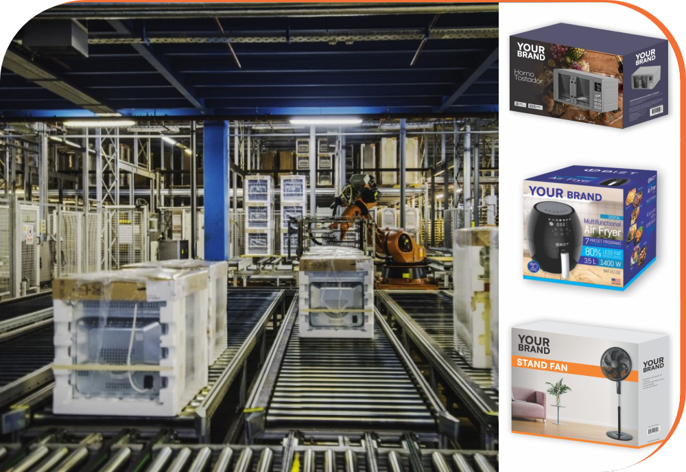 ATBIZ ofrece fabricación OEM completa en más de 15 categorías de productos, desde grandes electrodomésticos hasta tecnología. Nos encargamos del diseño del producto, selección de materiales, control de calidad, certificaciones y logística, entregando productos de marca propia totalmente identificados, conformes y listos para su comercialización.