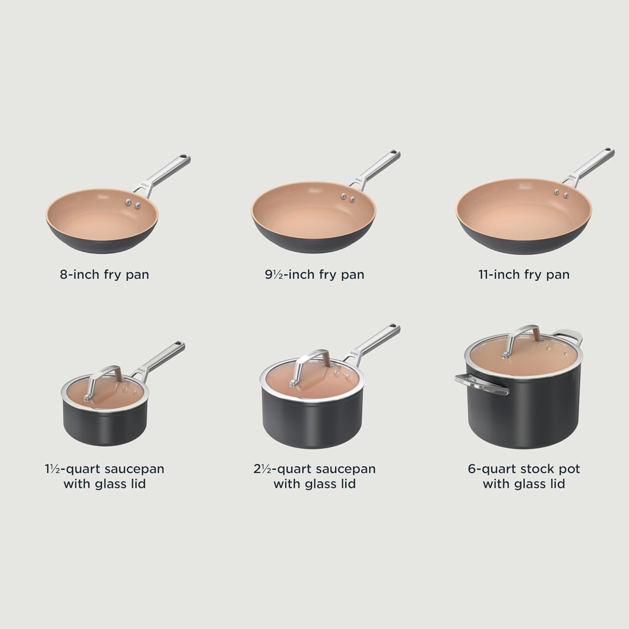 Ninja Juego de Batería de Cocina de Cerámica Essential de 12 Piezas de Larga Duración CW89900