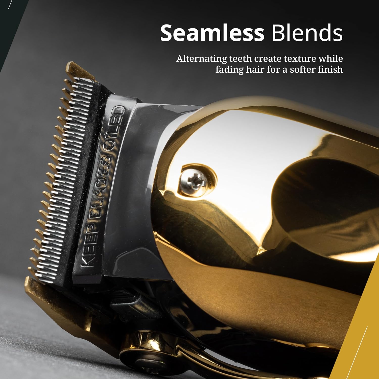 Cuchilla de repuesto de alta precisión con diseño único de dientes escalonados para una mezcla y textura sin costuras. DLC y revestimiento de titanio para una mayor vida útil de la hoja.