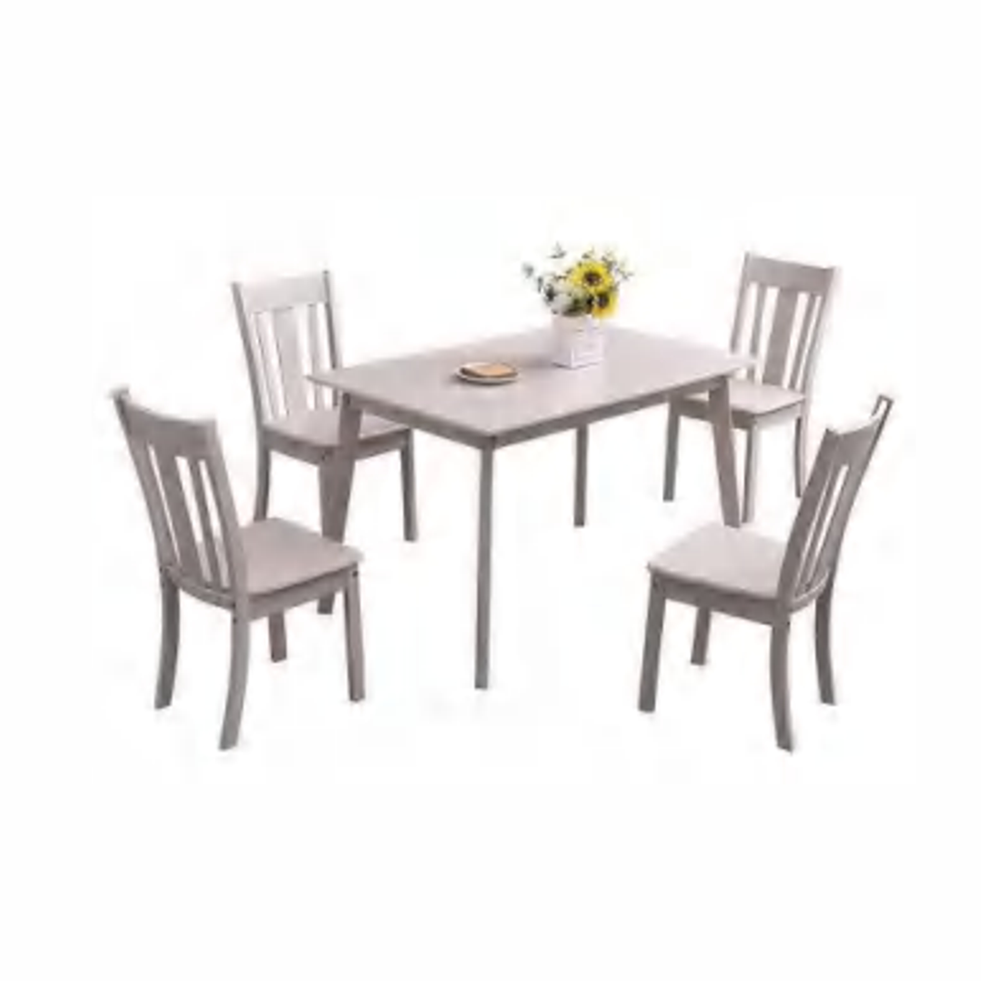 5 Piece Dining Set, Rubber Wood With Laminated MDF Table Top, Fully Knocked Down Structure