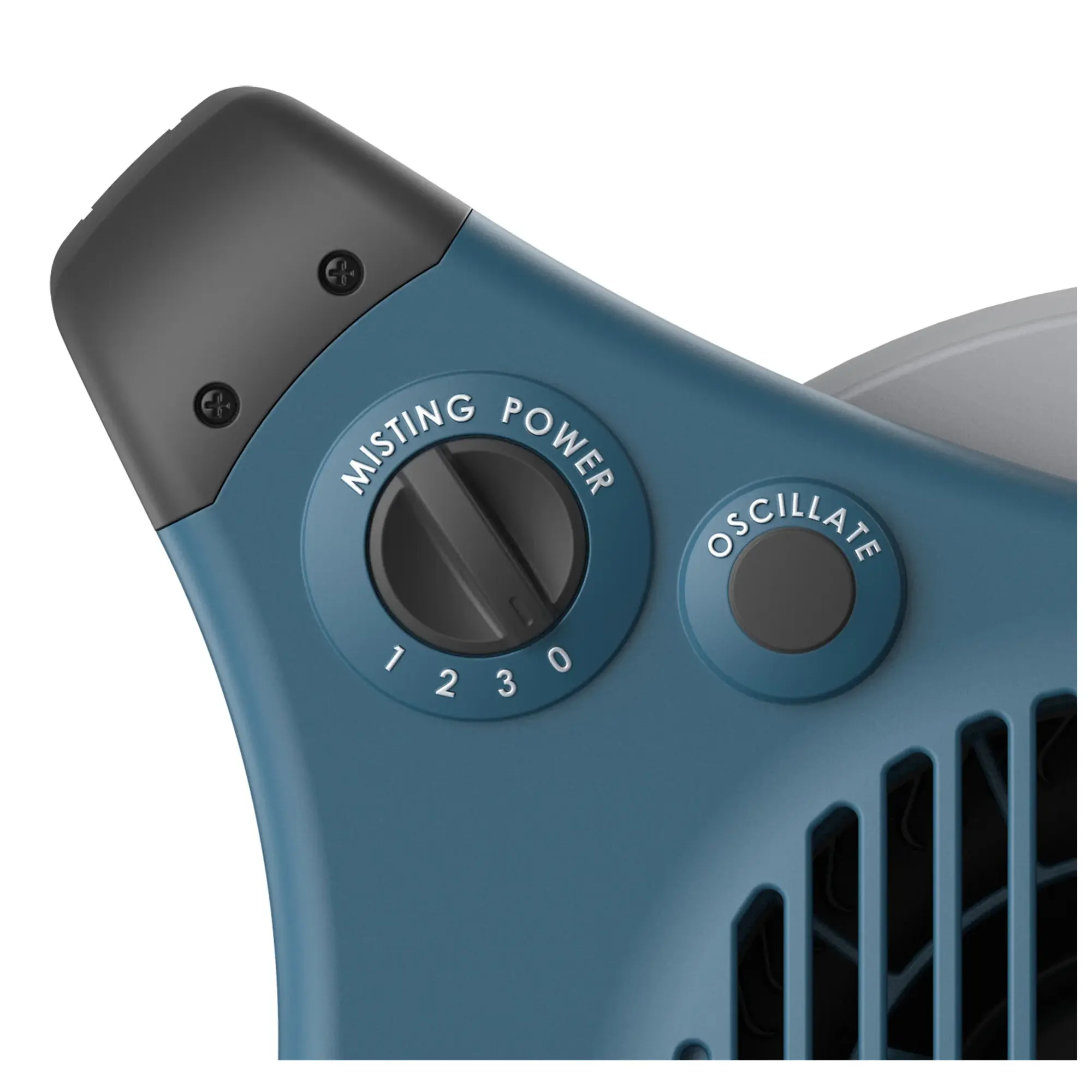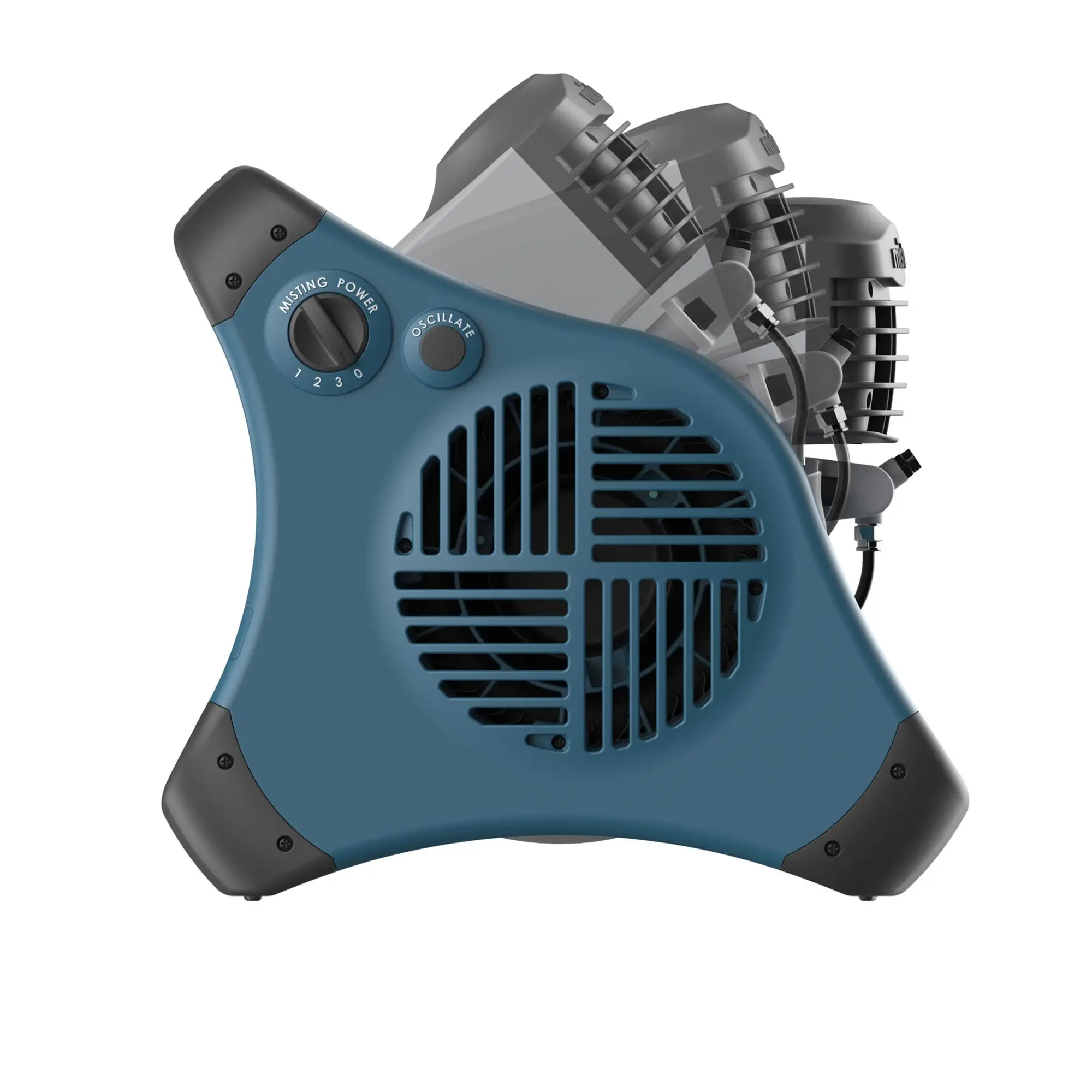- 90-degree pivot function directs mist flow and automatic louvers create a wide sweep
