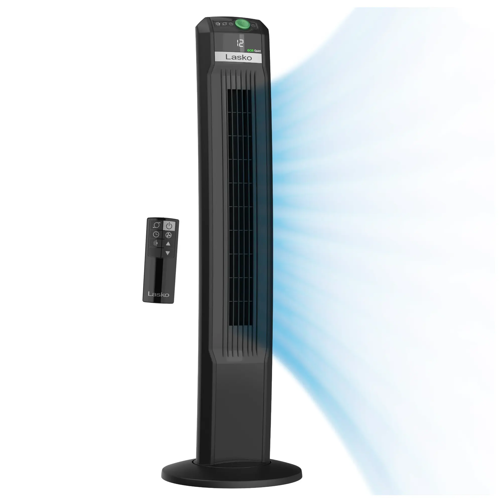 Lasko 42″ 12-Speed EcoQuiet DC Motor Tower Fan with Remote Control, T42700, Black