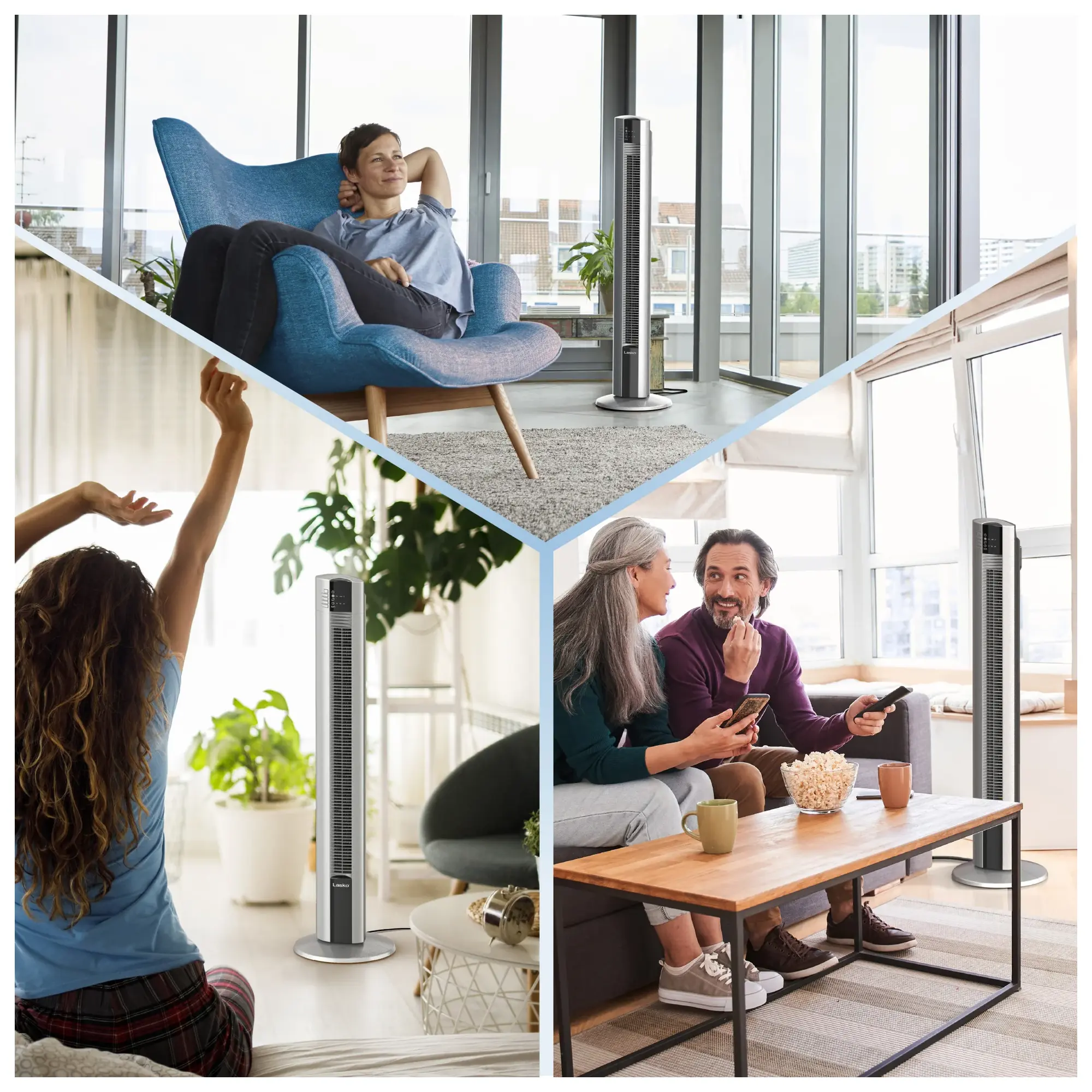 Lasko 48″ Oscillating Tower Fan with Fresh Air Ionizer and Remote Control, T48310, Gray