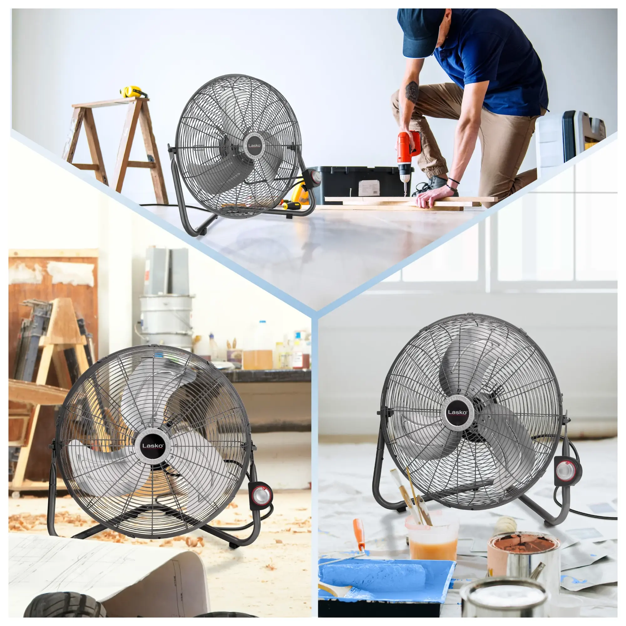- Pivoting fan head to direct airflow where needed