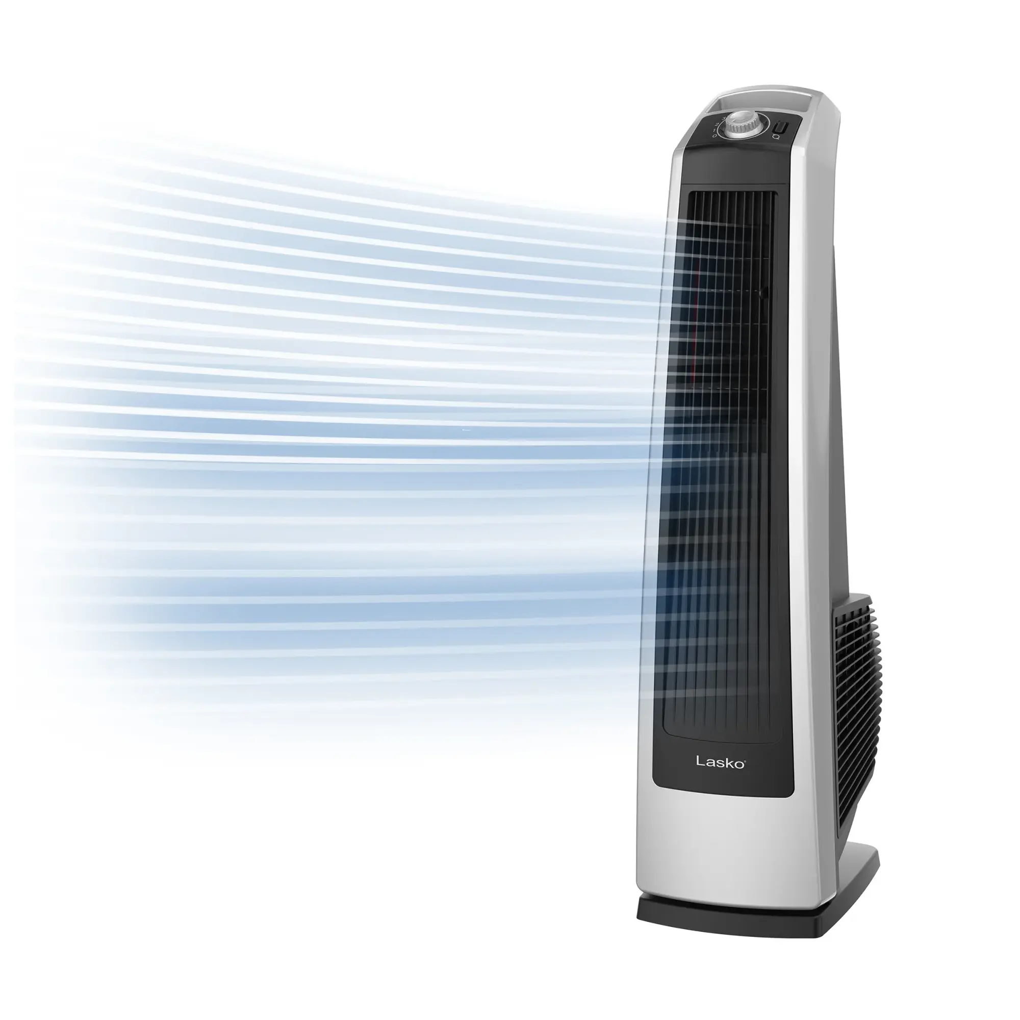 Lasko Oscillating High Velocity Tower Fan with 3 Speeds, U35105, Gray/Black