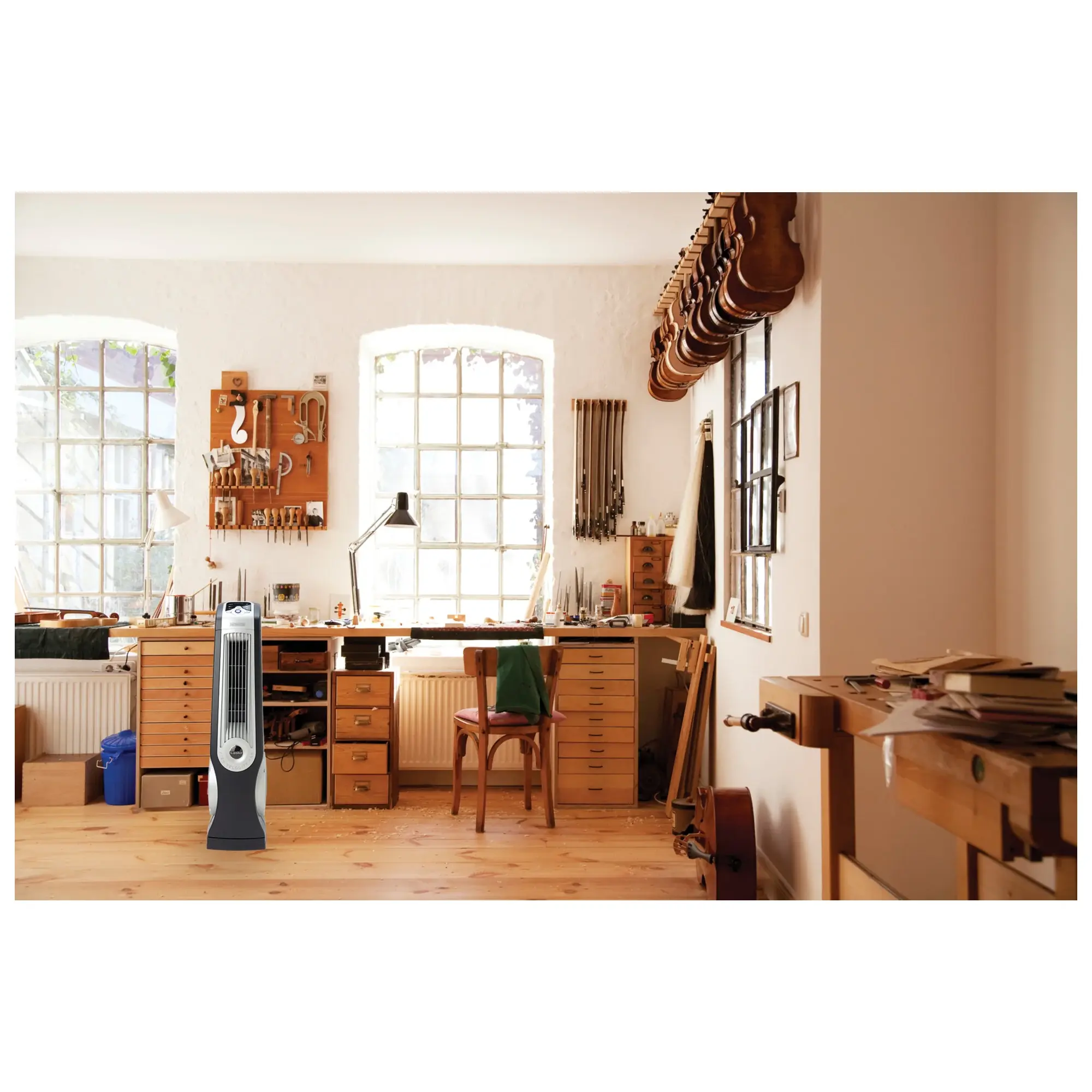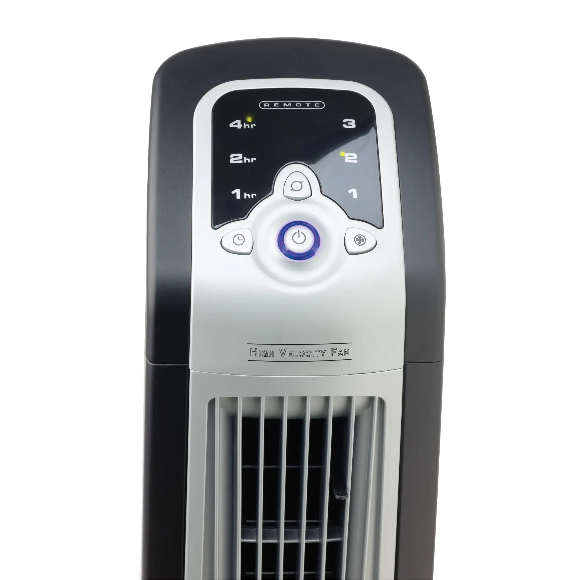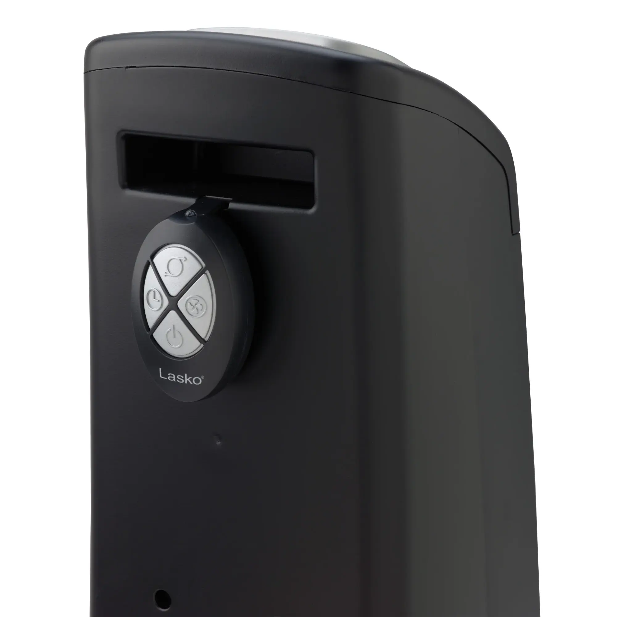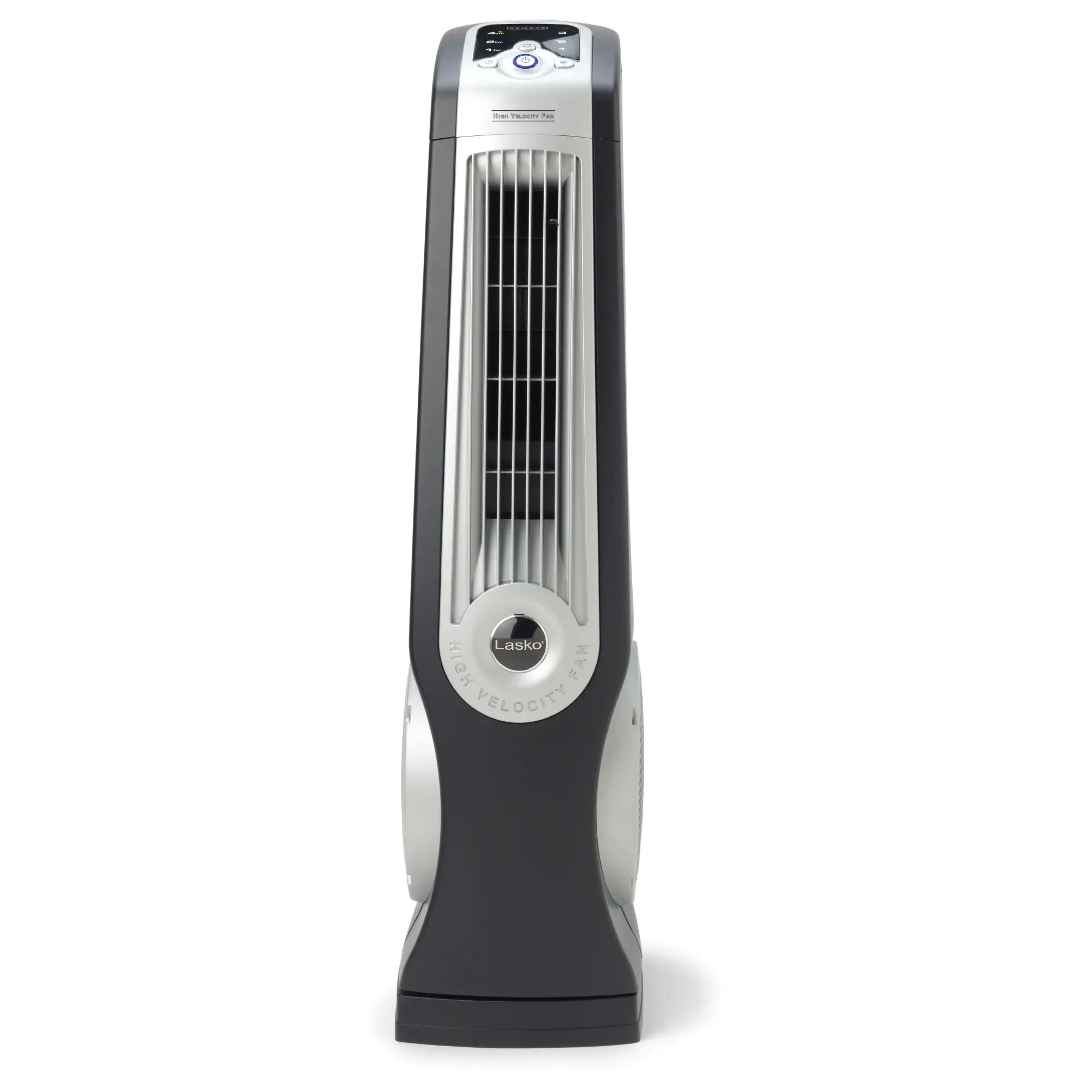Lasko Oscillating High Velocity Tower Fan with Remote, U35102, Black/Silver