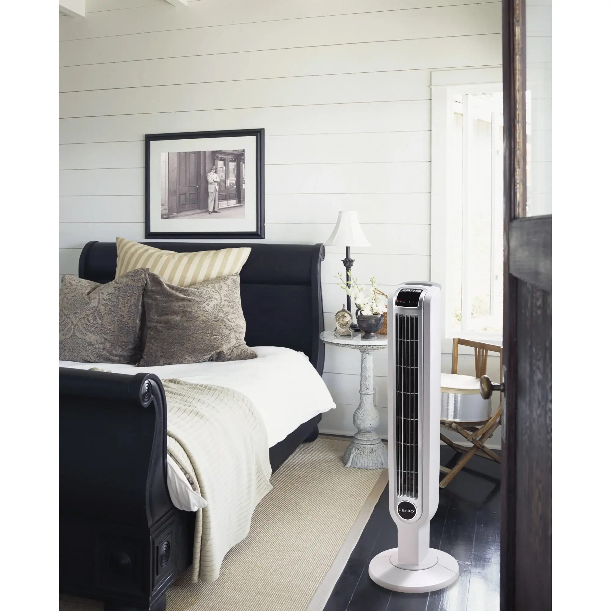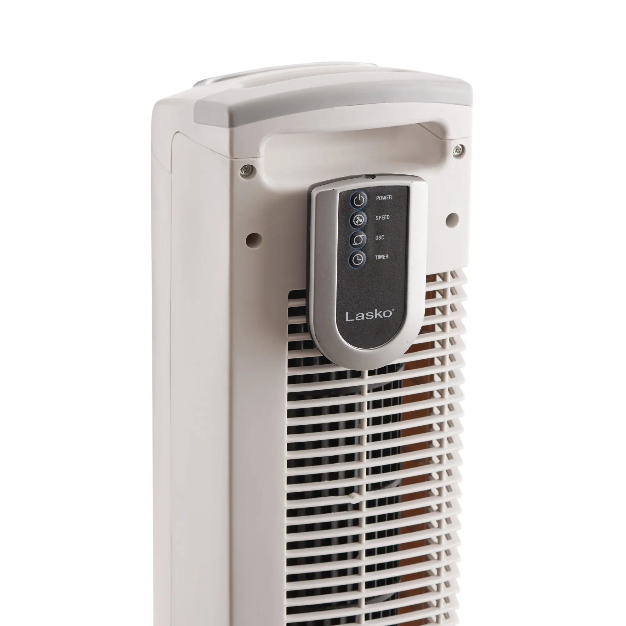 Lasko Portable 3-Speed Oscillating Tower Fan with Timer and Remote Control, 2510, White