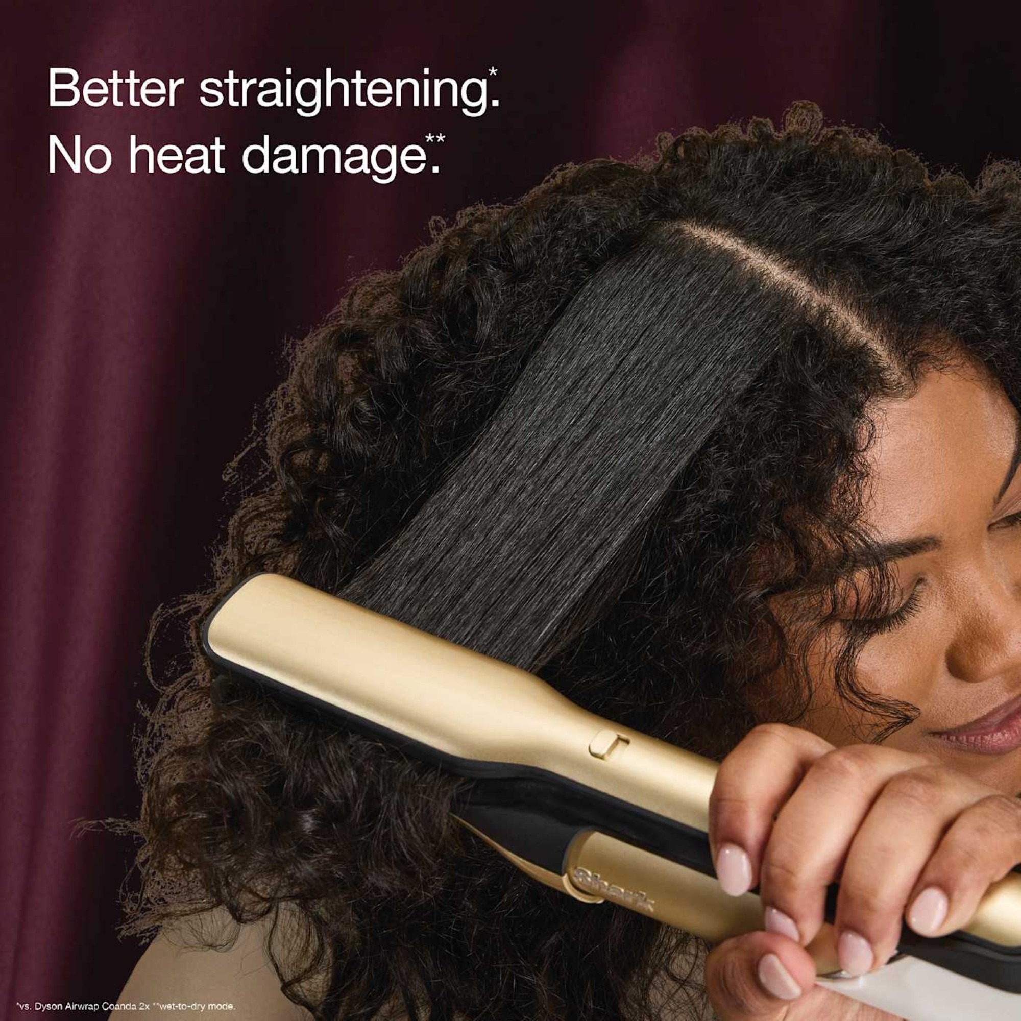 - Shark Silki™ Hot Tool + Air Straightener: Temperature control with ceramic plates and powerful airflow work together to deliver silky, shiny straightening on both wet and dry hair.