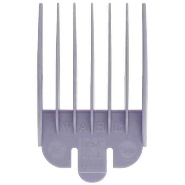 The WAHL #6 Color Coded Nylon Cutting Guide is a valuable tool for professionals specializing in longer short haircuts, soft texture, and advanced blending techniques. This guide delivers a reliable 3/4 inch (19 mm) cutting length, perfect for preserving bulk on top or executing smooth transitions in longer fades. The use of the distinct Lavender (or Light Purple) color in WAHL’s coding system ensures instant visual size selection, optimizing speed and accuracy in your service.